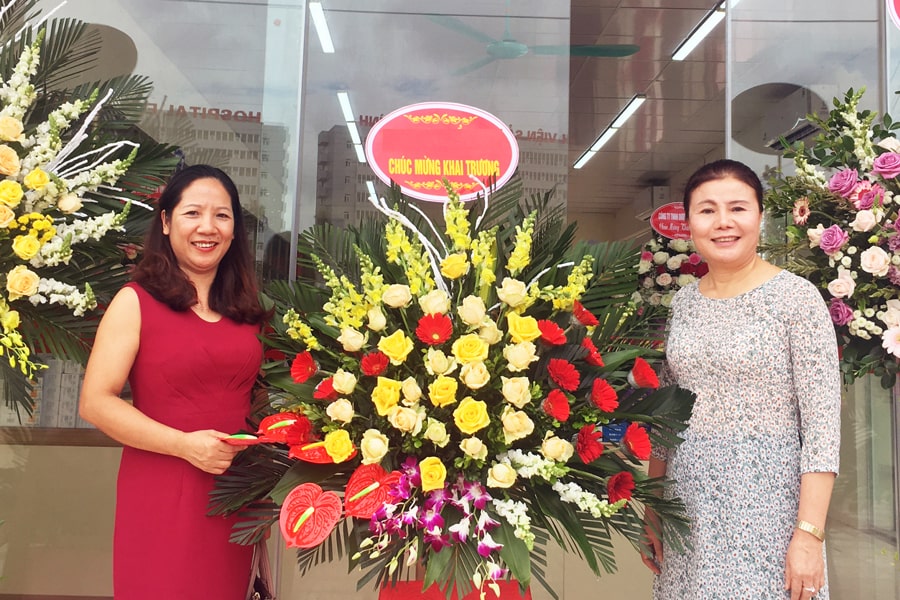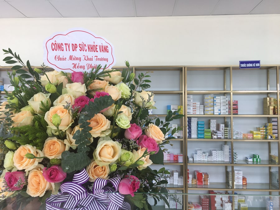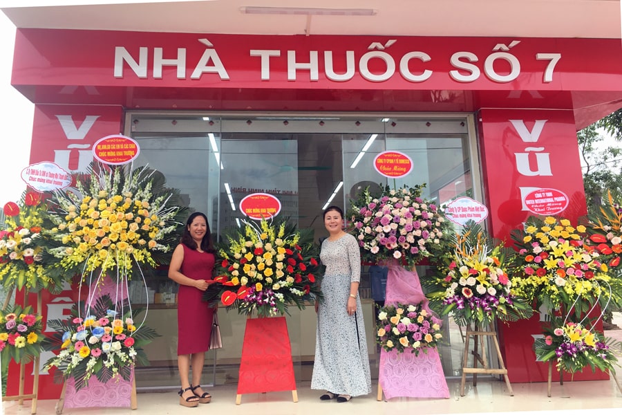 Đại diện công ty Dược Mỹ Phẩm Sức Khoẻ Vàng chúc mừng khai trương Nhà thuốc Vũ Duyên 7.