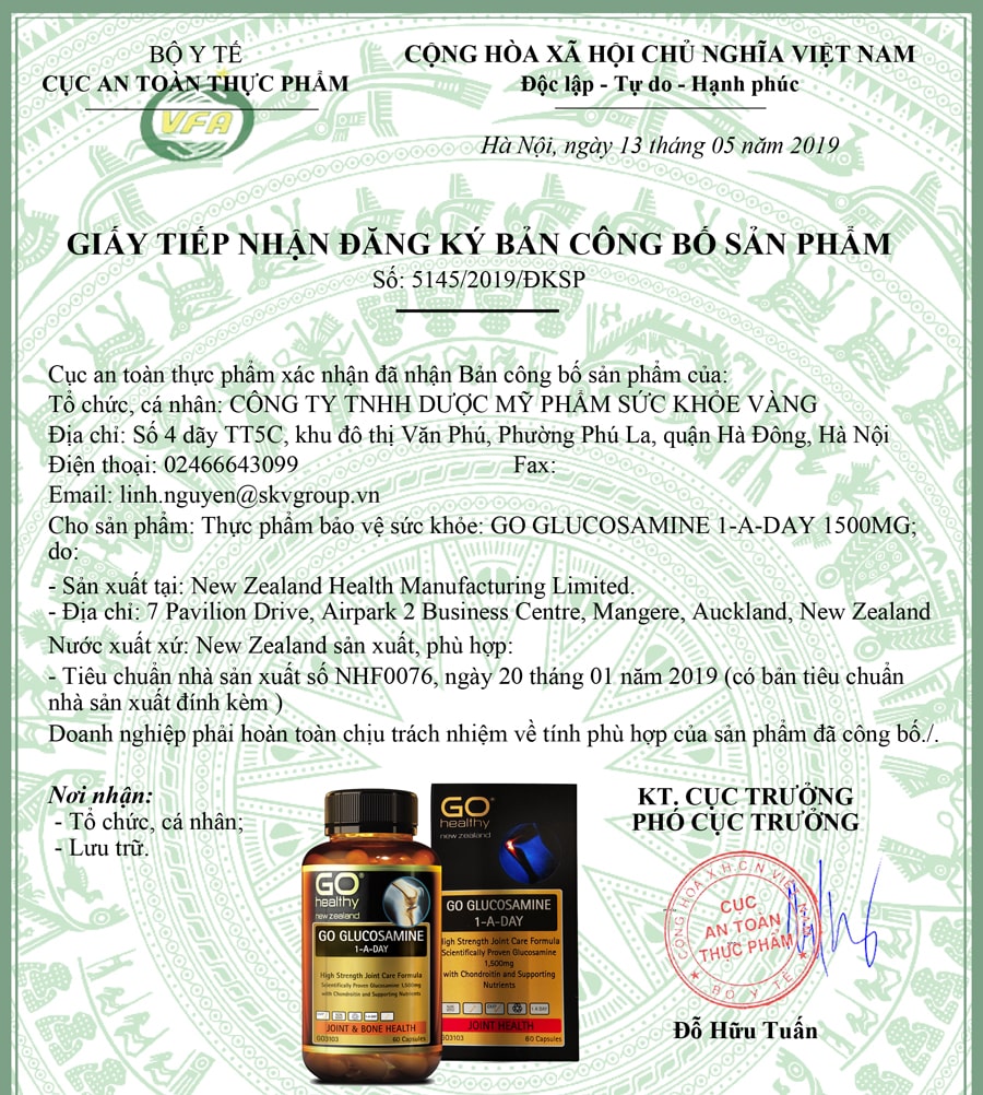Thực phẩm bảo vệ sức khỏe GO GLUCOSAMINE 1 A DAY 1500MG
